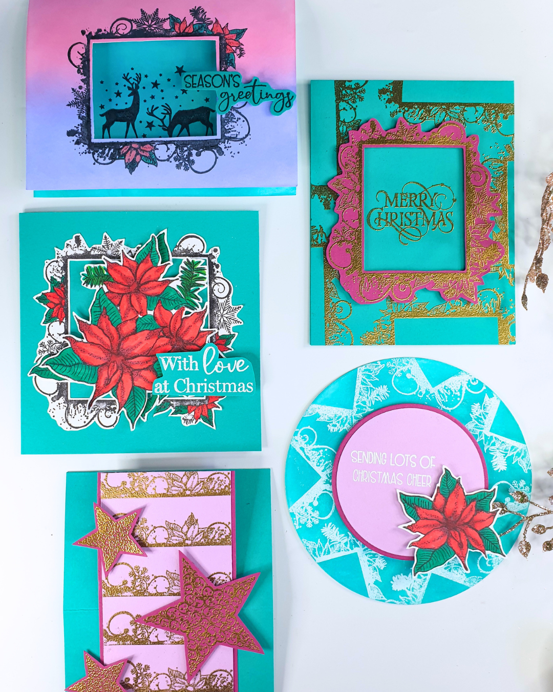 Handmade Christmas card created by Sarah Phelan from Sarah's Stampin' Retreat showing different ways to use a frame stamp with Creative Stamping Magazine 151