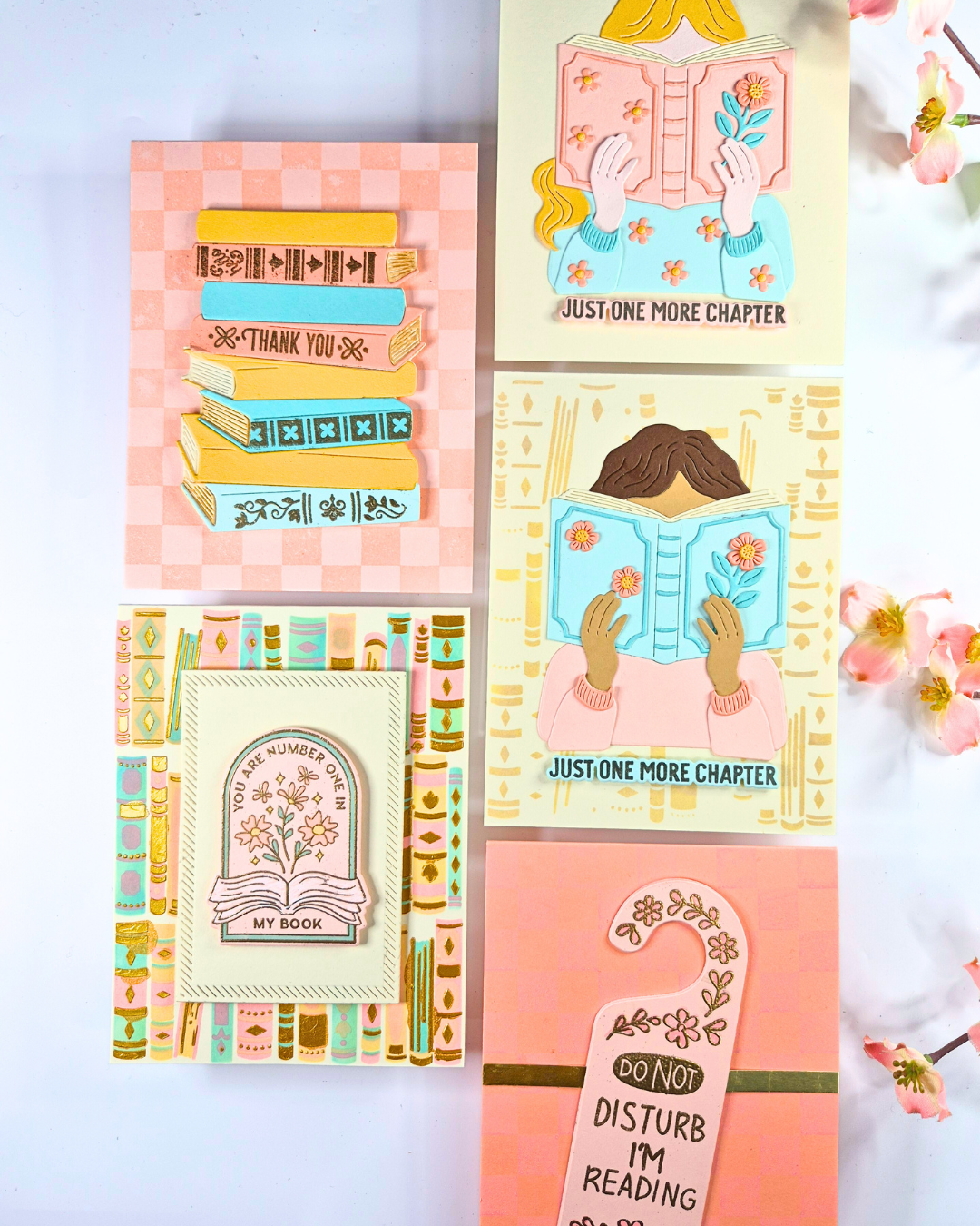 Hello Crafters! How are you? I’ve got some cute cards to share with you today, perfect for the book lovers in your life! I created them using this month’s Hero Arts Hero Studio Subscriptions! As you can see they have a book theme that they’ve named “One More Chapter”. As always they work really well individually but you can open up even more possibilities when you combine them!